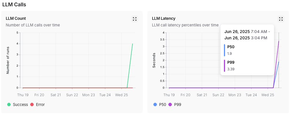 monitoring 탭에 들어가면 파인튜닝 모델의 전체적인 성능 지표와 사용 현황을 실시간으로 확인할 수도 있다. 여기서는 응답 속도, 에러율, 토큰 사용량, 그리고 모델의 정확도 변화 추이를 시각화된 차트로 모니터링하여 모델 운영 상태를 종합적으로 파악할 수 있다. 처음보는 지표중에 P50, P99가 있었는데 P50은 '보통 사용자는 얼마나 빨리 답변을 받나', P99는 '가장 오래 기다리는 사용자는 얼마나 기다리나'를 보여준다고 한다. 이 두 숫자가 비슷하면 모든 사용자가 고르게 빠른 서비스를 받고 있다는 뜻이고, P99가 훨씬 크면 일부 사용자는 너무 오래 기다리고 있다는 신호이다.