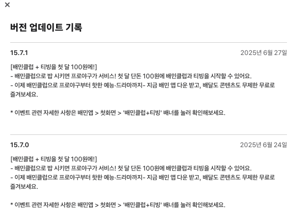 일곱 번째로 서비스 개편 내역이다. 이것은 보통 릴리즈 노트라고도 하는데, 이 회사에 최근 어떤 업데이트가 일어났는지 확인할 수 있다.